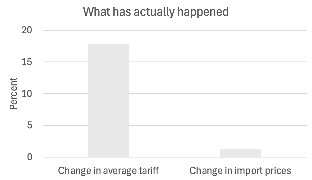 但实际情况是,关税大幅上升的同时,进口价非但没下降,反而上升了。这势必会导致美国进口成本上升,关税的代价,由美国进口商承担了。用克鲁格曼的话说,“我们目前正在经历自2022年夏季以来从未见过的高成本通胀”,这样的成本飙升,之后也会传导给美国的消费者。