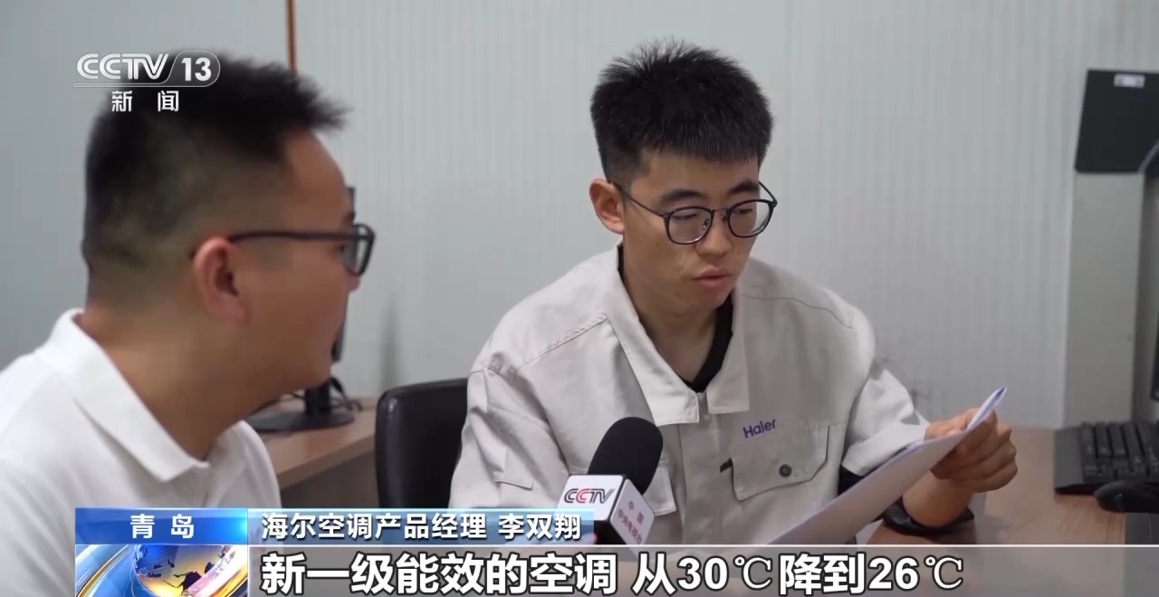 海尔空调产品经理 李双翔:新一级能效的空调,从30℃降到26℃用时是44分钟,耗电量是1度。老空调用时是8个小时,耗电量是5度。
