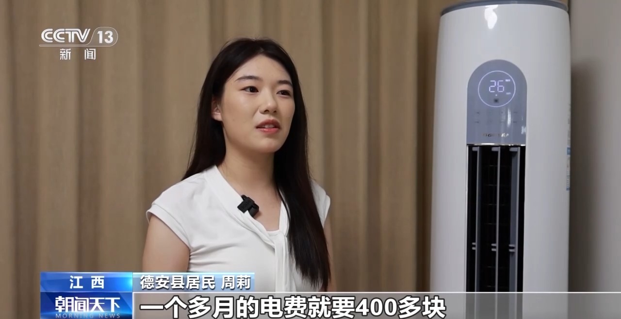 江西省德安县居民 周莉:以前夏天开空调,一个多月的话,电费就要400多块,自从换了新空调之后,上个月电费才200多块钱,一下子节省了快一半的钱。