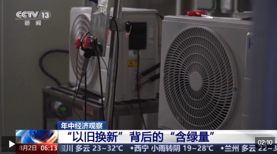 今年上半年,我国经济社会绿色转型进入“快车道”,绿色成为经济发展的重要底色。以“以旧换新”为例,政策在出台时就带有鲜明的“低碳导向”。通过差异化的国家补贴政策,大量绿色、节能的家电产品走进千家万户,既释放了消费潜能,又助力了节能减排。今天的“年中经济观察”,跟随记者的镜头一起去感受“以旧换新”背后的“含绿量”。