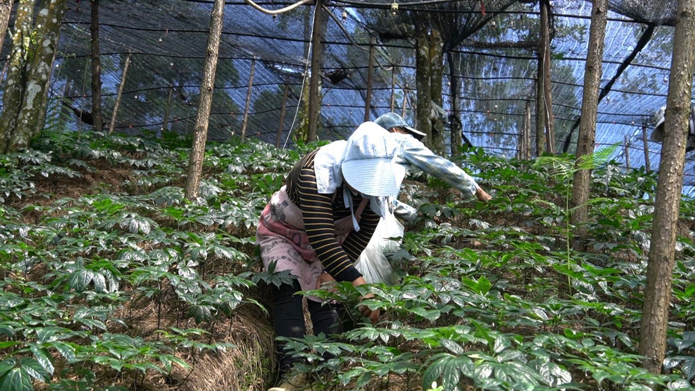 八角林的新生,不止于八角本身。西畴县创新探索“八角+中药材”立体种植模式,2024年10月起,在改造后的林下试种三七、重楼等名贵药材,其中600亩三七、70亩重楼长势喜人。