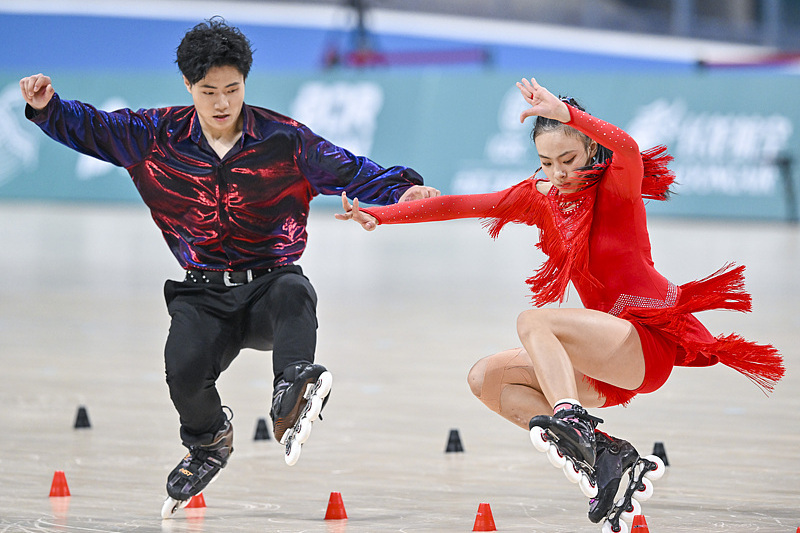 25岁的张颢是土生土长的成都人,他是中国轮滑的标志性人物,11岁就获得2011德国盖辛根世界自由式轮滑锦标赛青年组男子花式绕桩冠军,17岁时在天津全运会、2017南京世界全项目轮滑锦标赛上两次成为“四冠王”。2023年,张颢和搭档朱思怡携手夺得杭州亚运会混合自由式轮滑男女双人花式绕桩金牌,2024年罗马世界全项目轮滑锦标赛上,他再次夺得成年组男子花式绕桩冠军。