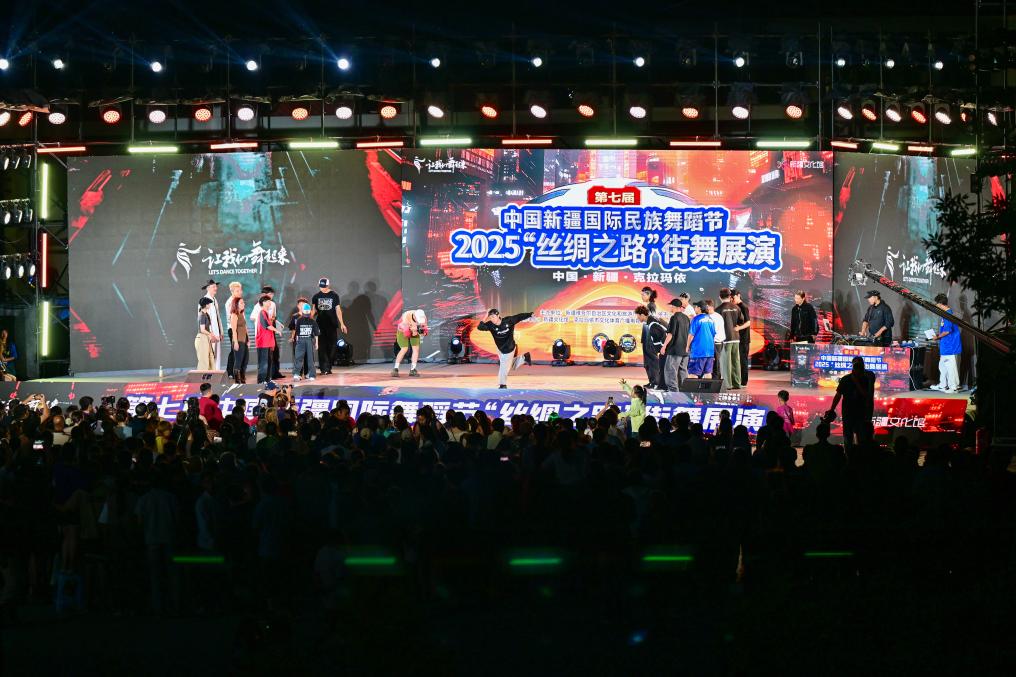 8月3日晚,在第七届中国新疆国际民族舞蹈节2025“丝绸之路”街舞展演的舞台上,国内外舞者相聚克拉玛依市同台亮相,用街舞语言讲述追梦的青春故事。