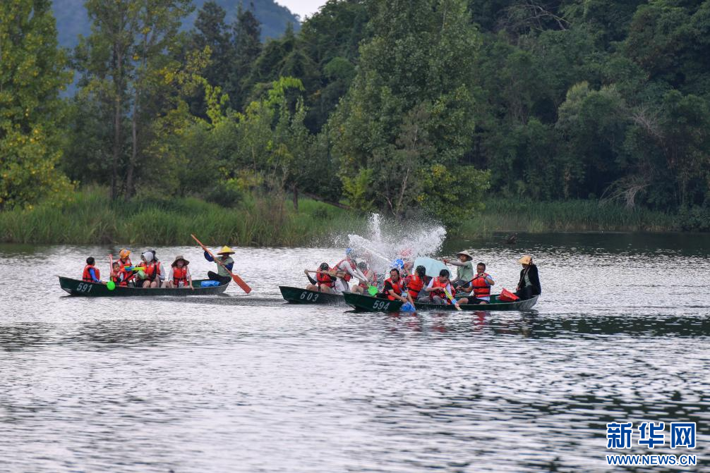 7月15日,游客在普者黑景区嬉戏玩耍。新华社记者 彭奕凯 摄