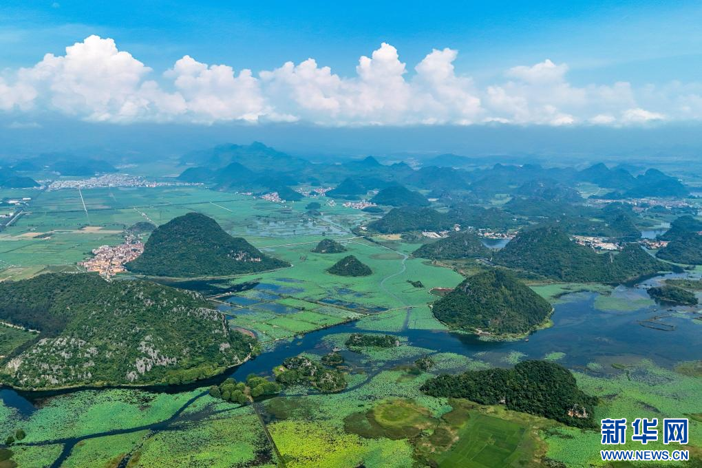 7月16日拍摄的普者黑景区风光(无人机照片)。新华社记者 彭奕凯 摄