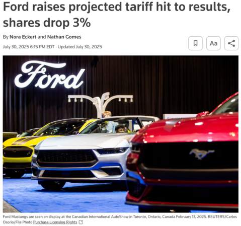 更令福特高层难以接受的是,与此同时,日本汽车制造商却从特朗普政府与日本签署的“双边贸易协议”中获益,对美出口车辆的关税仅为15%,远低于美系车辆零部件被征收的25%。吉姆·法利直言,这等于在全球市场上让“美国品牌失去了公平竞争力”。