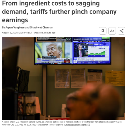 △路透社报道,各行各业公司都在表示,特朗普政府的关税政策给他们带来了极大痛苦。