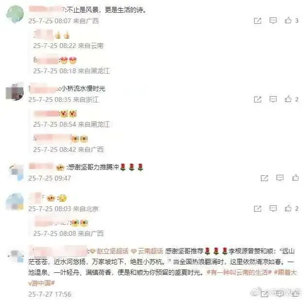 云南网友纷纷喊话“请坚哥来临沧避暑度夏!”“欢迎大家来云南避暑!”等。