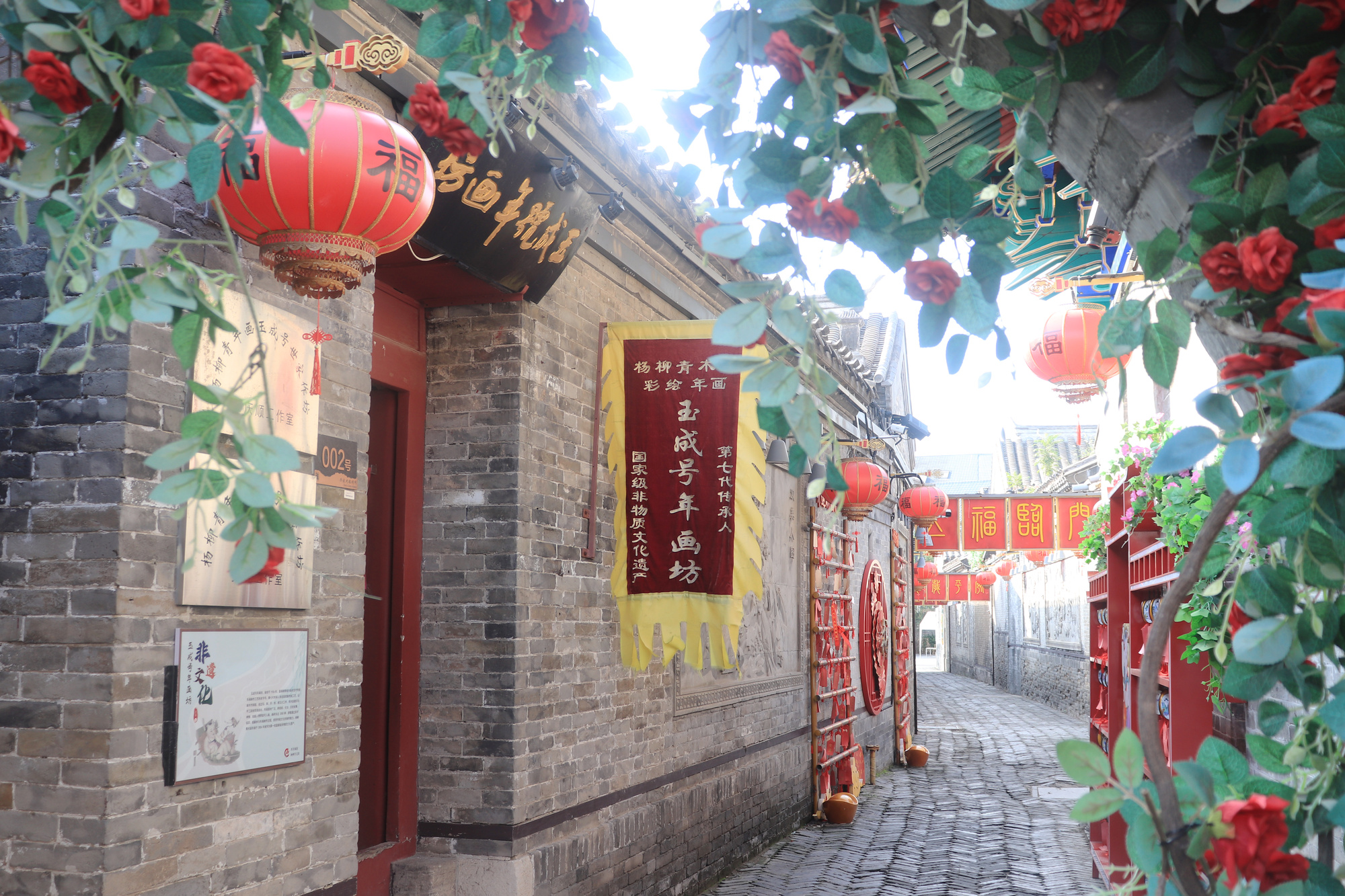 这里是杨柳青古镇2.0版本焕新后打造的“年画+”场景之一,“年画里”以“一区双廊三巷”的沉浸式展陈格局,让非遗年画融入生活美学。一区颂祥瑞,双廊游人生,三巷藏瑰宝,行走其间,步步皆景,处处有情,丝丝入扣地展现了“游年画人间·品人生百态”的主题理念。