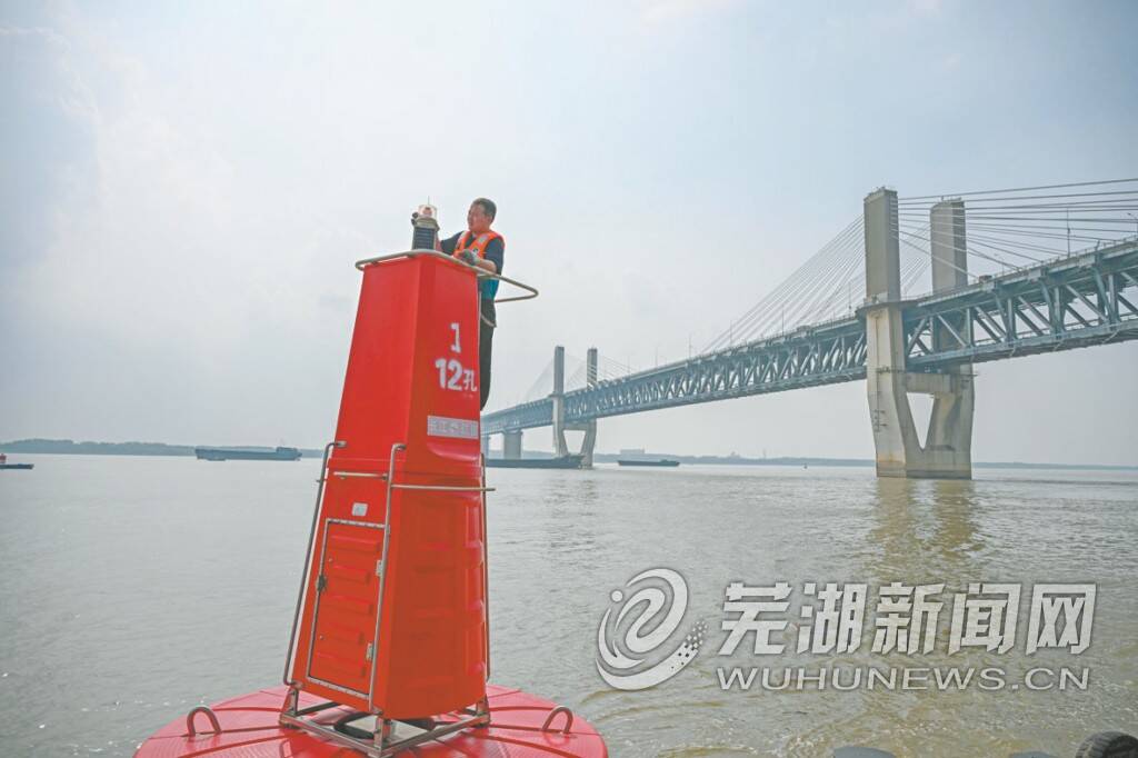 坚持生态优先,今年长江芜湖航道处将我市境内青弋江河口至朱家桥段约10公里航道,设为长江安徽段首个航标绿色养护示范段,计划对段内39座钢制航标浮具,80%以上替换为新型环保材料航标浮具,目前已替换11座。