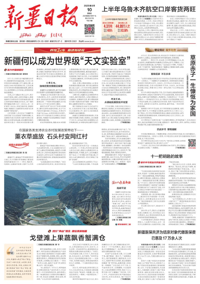 QTT建成后,将面向全球开放国际观测申请,成为“一带一路”上天文合作的重要支点。“当国外科学家来到奇台,他们看到的不仅是世界级望远镜,更是当地蓬勃的发展和各族群众的幸福生活,这是最真实、最动人的新疆故事。”王娜说。