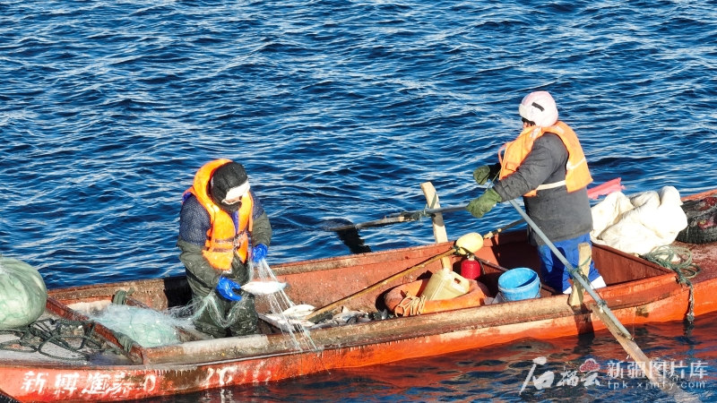新疆赛湖渔业科技开发有限公司在赛里木湖捕捞高白鲑鱼。(资料图)徐启帆摄