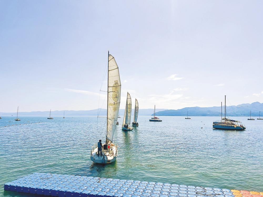 “在抚仙湖开展帆船运动有着绝佳的自然条件,环湖100多公里,全年有280多天的风力是安全满足训练、体验或培训的条件。明星鱼洞景区每年游客量约30万人次,帆船运动项目的转化率约为15%,每年还在逐步上涨。”澄江明星鱼洞景区总经理柳春宝介绍,明星鱼洞景区计划与全球多个国家建立帆船运动的联系、联动,同时打造具有国际IP的知名赛事,助推文体旅融合发展。