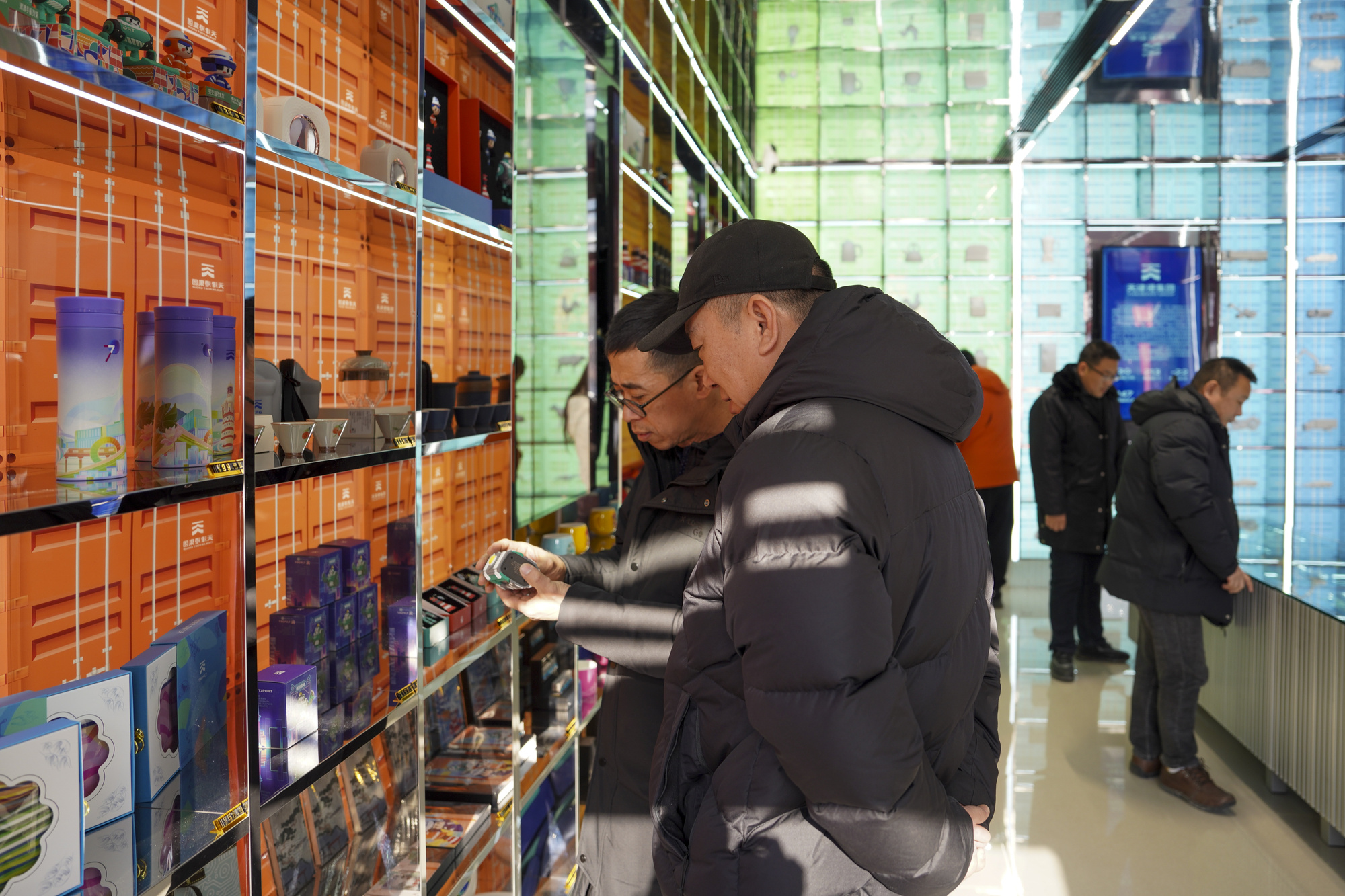 20世纪80年代与21世纪初的两次整修,让古老的街区重现飞檐斗拱;2024 年“微更新”工程后,天津民俗博物馆与天后宫连成一片,成为首批国家级历史文化街区保护典范,更令人惊喜的是“津港印象”展示体验项目的落地——2024年,在天津建卫620周年之际,“津港印象”在古文化街落成运营,该项目融汇海河文化与漕运文化,在古文化街这片历经历史浸润的土地上记录下天津港口和城市发展历程,以其独特的方式诉说着天津从漕运码头到现代海港的变迁,成为展现河海文化与港产城融合的一扇窗口。彩色集装箱服务台旁,游客正操控模拟码头设备;在负一层的沉浸式影片里,漕运码头与现代港区瞬间切换。“原来天津港和古文化街早就是一家人。”一位游客的感叹,道出了河海文化的当代共鸣。