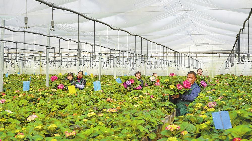 姚安花卉基地的务工群众在采收鲜花。 本报通讯员 王文凯 摄