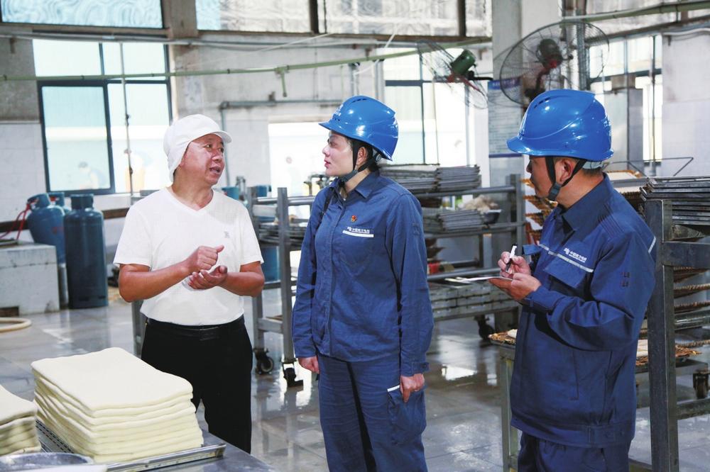 红河石屏供电局工作人员走访石屏县异龙镇城东鲜豆腐园区北门豆腐厂,了解用户用电情况。 李婷 摄