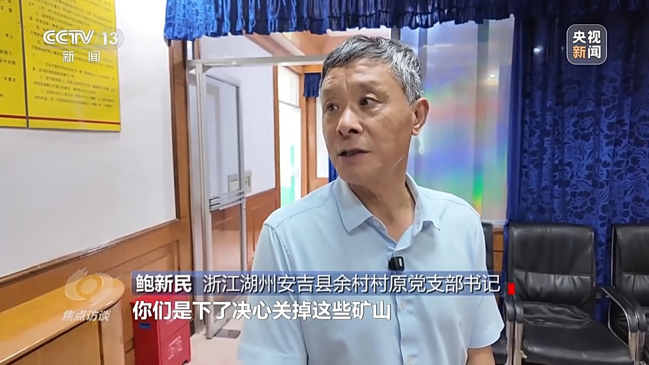 浙江湖州安吉县余村村原党支部书记 鲍新民:他后来就讲了,你们下了决心关掉这些矿山是高明之举,他说你们有金山银山,有绿水青山,绿水青山就是金山银山。