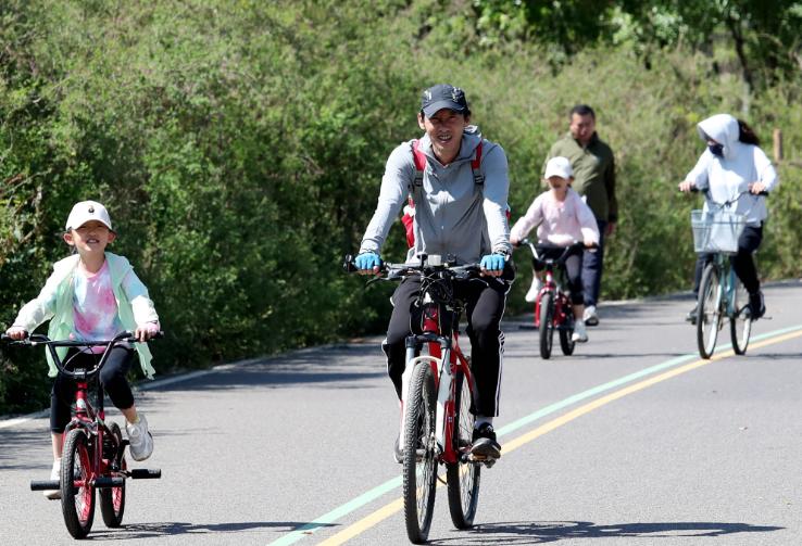 市民游客在滇池绿道骑行健身。 本报记者 杨峥 摄