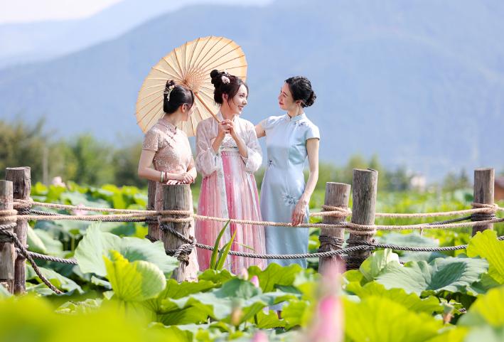 永胜县三川镇万亩荷花进入盛花期,吸引众多游客前来观赏。本报记者 胡妤雅 摄