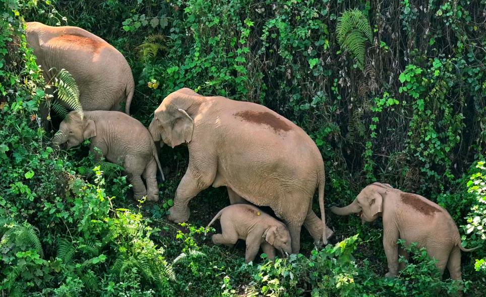 野生亚洲象。 本报通讯员 窦海蓉 摄