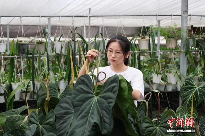 在桐乡“瓜牛雨林”基地里,当直播镜头对准丝绒质地的花烛叶片,“95后”廖万甜凭借专业学识侃侃而谈,解锁着“一片叶子卖出2.6万元”的绿色魔法。