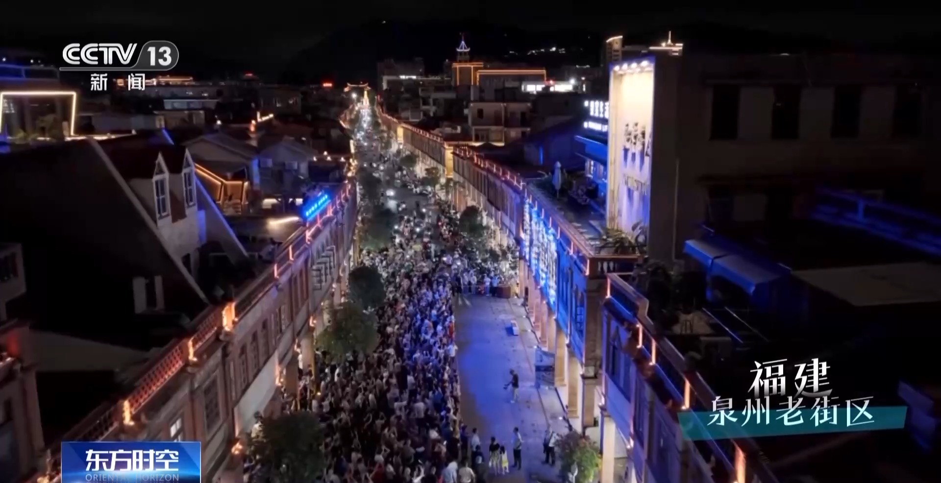 这个夏天,老街区持续迸发消费新活力,世遗之城福建泉州,百年骑楼化作舞台,掌中木偶跃然窗台。灯光投影随节奏变幻,将每扇窗户化作动态“银幕”。这场融合传统技艺与现代声光电的沉浸式演出,既有非遗的典雅,又有潮流的活力。作为拥有660多幢传统历史建筑的古城,7月份以来,泉州还推出非遗快闪等多项夜间活动,接待游客超过141万人次,同比增长14.8%。