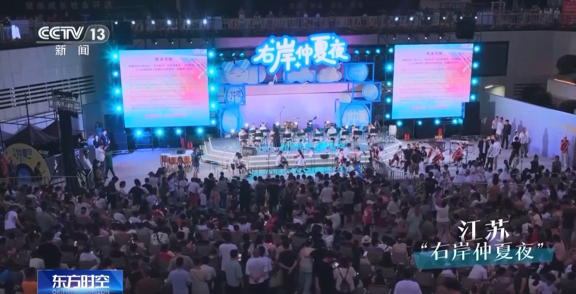 这个夏天,文化休闲为夜之城注入新动能。江南名城江苏苏州,晚风为幕,金鸡湖畔“变身”露天音乐会,不同身份的人们在动感旋律中共享欢乐,城市更具温度与魅力。今年上半年,这里各类演出吸引超40万人次前来。