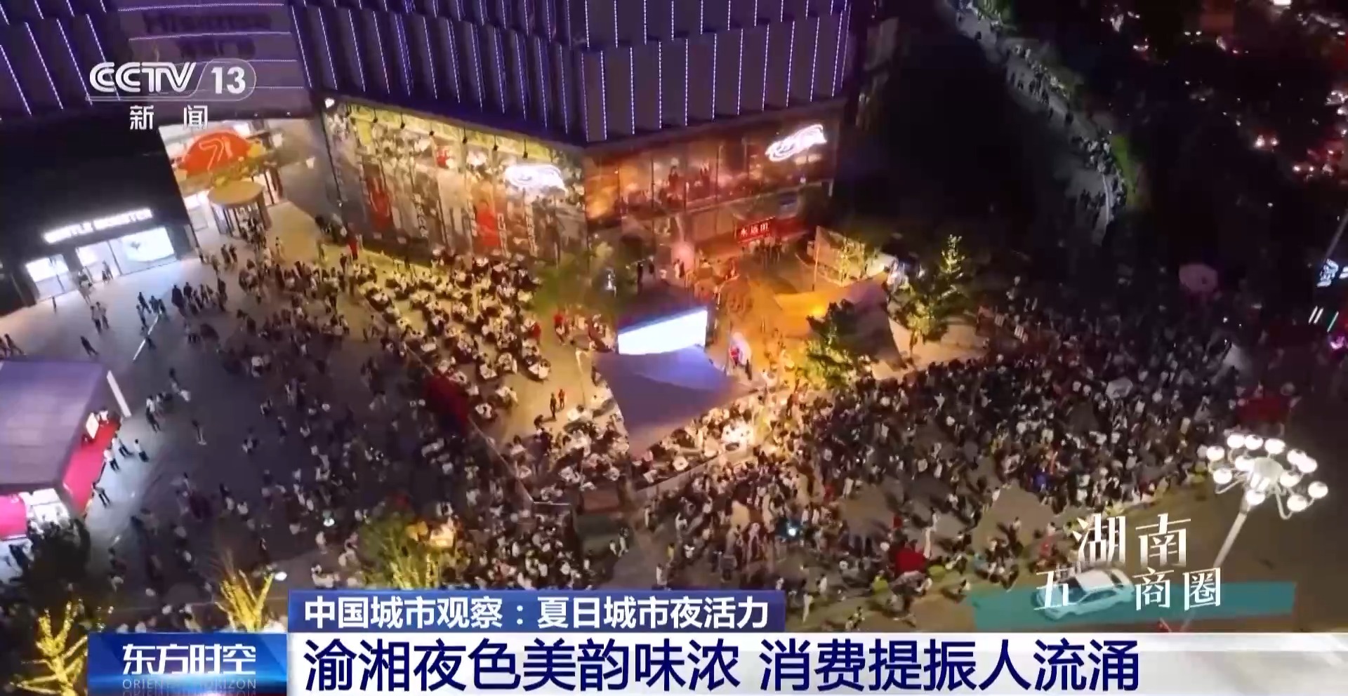 这里是湖南长沙,五一商圈霓虹闪烁,美食烧烤藏着市井烟火,就在刚刚过去的7月份,这里夜间累计客流超过805万人次,“热辣长沙”的活力持续升温。