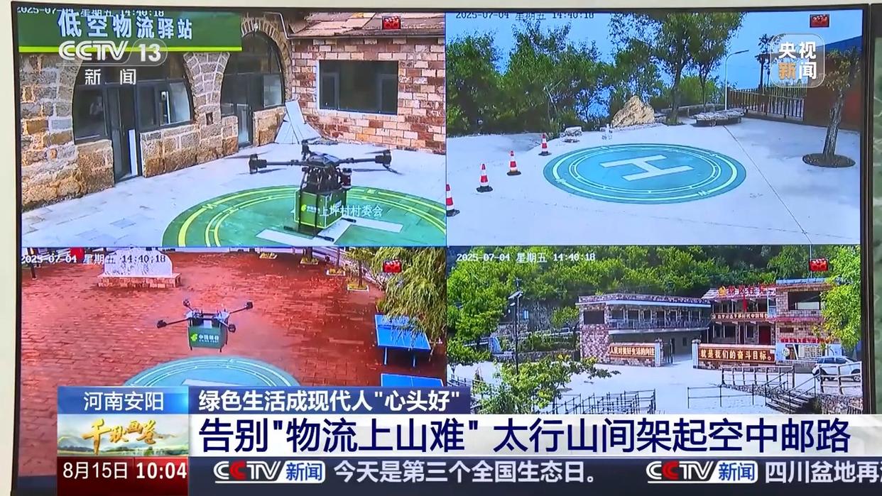 前不久,在河南安阳石板岩镇,一架架无人机有序起降,在太行山巅划出一条条“云端邮路”,以前开车需要数小时的悬崖山路,如今被空中通道缩至仅需要7分钟。