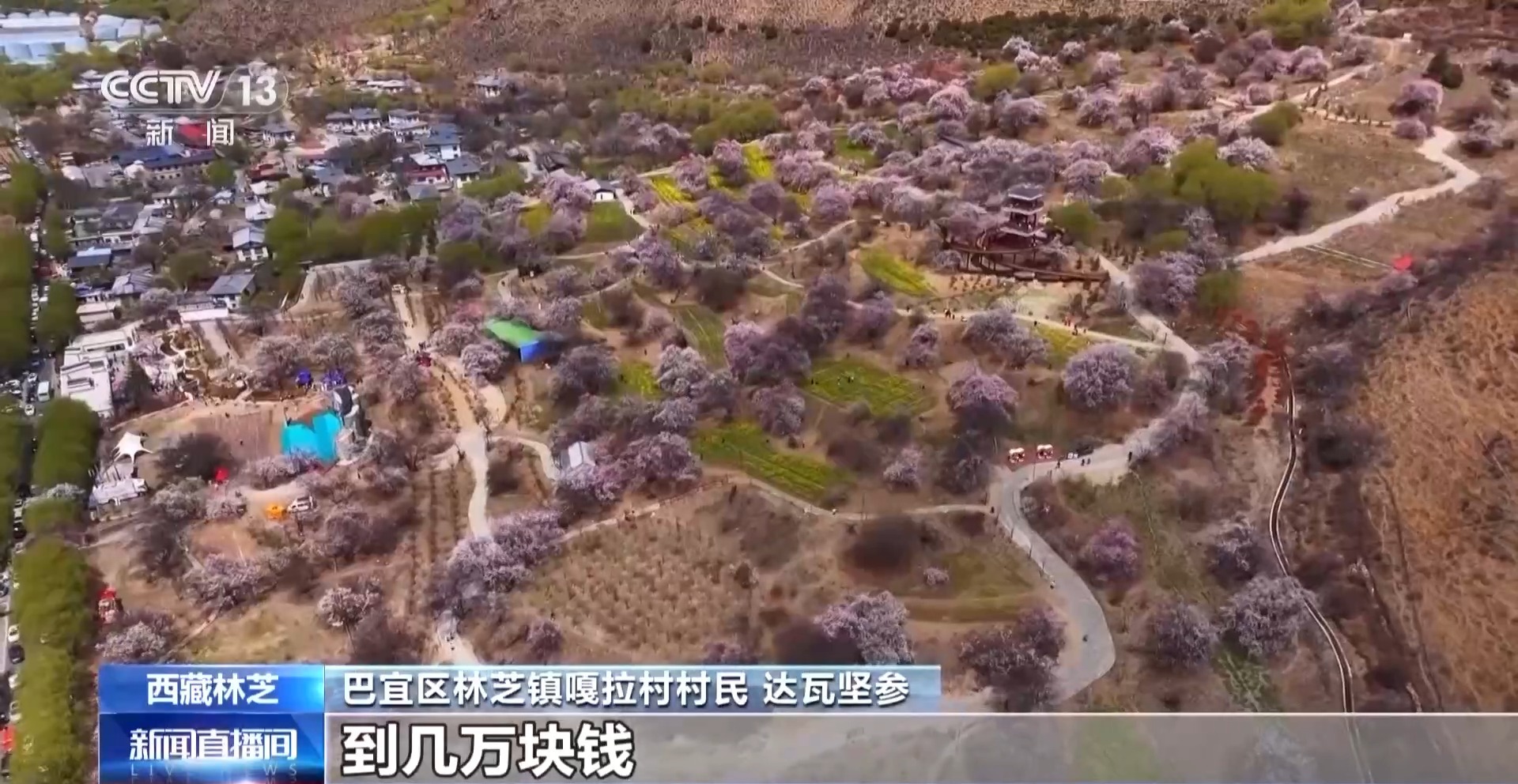 嘎拉村村民 达瓦坚参:我们桃花节开始搞起来的时候,全村收入几百块钱到几千块钱到几万块钱,现在的话已经几百万了。
