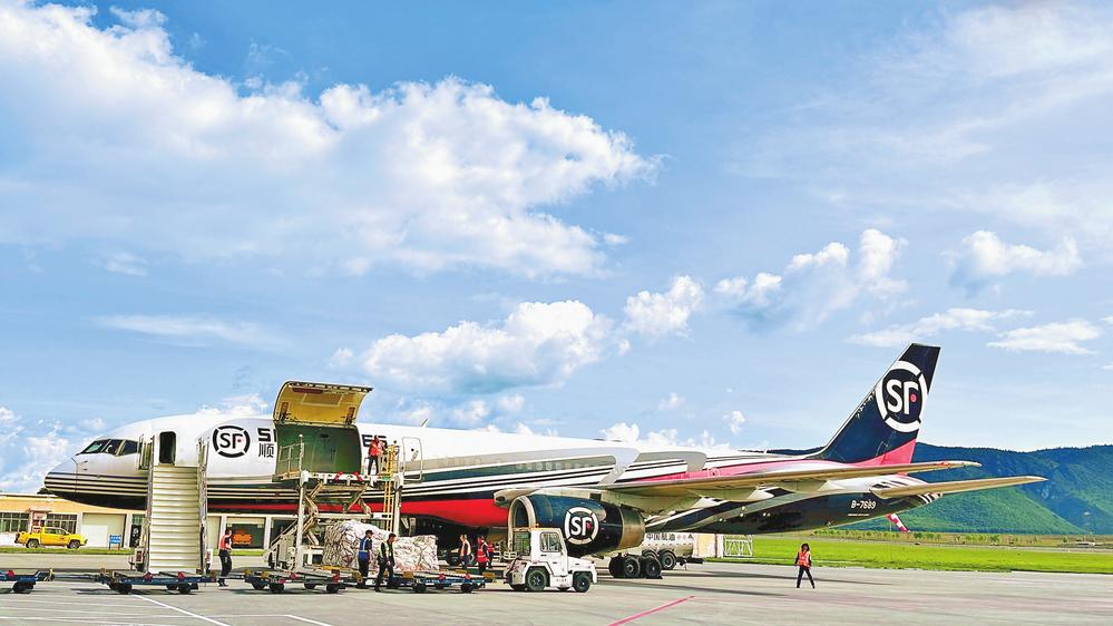 每年6至9月是香格里拉新鲜松茸的上市季。记者从有关部门获悉,今年7月初开飞的顺丰松茸全货机,截至8月13日共运输48架次,货邮吞吐量469.938吨,同比增长10.68%,经昆明中转货量219.733吨。这座“空中桥梁”以高效、稳定的运输,为香格里拉松茸搭建起通往全国乃至全球市场的绿色通道。
