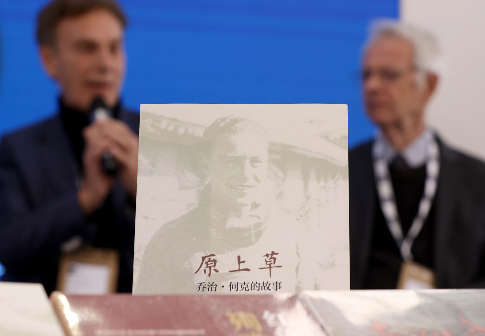 这是3月12日在英国伦敦书展上展示的《原上草:乔治·何克的故事》中文版新书。新华社记者 李颖 摄’