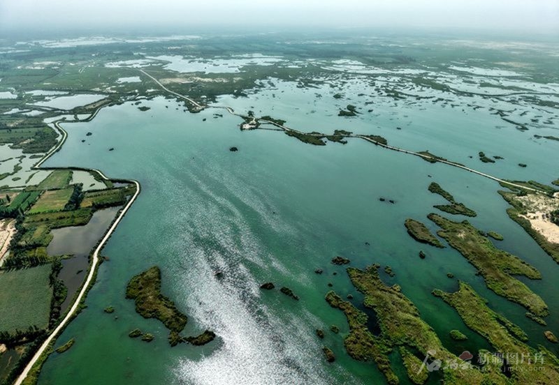 俯瞰塔克拉玛干沙漠边缘的拉里昆国家湿地公园(8月6日无人机摄)。天山网-新疆日报记者 邹懿 摄