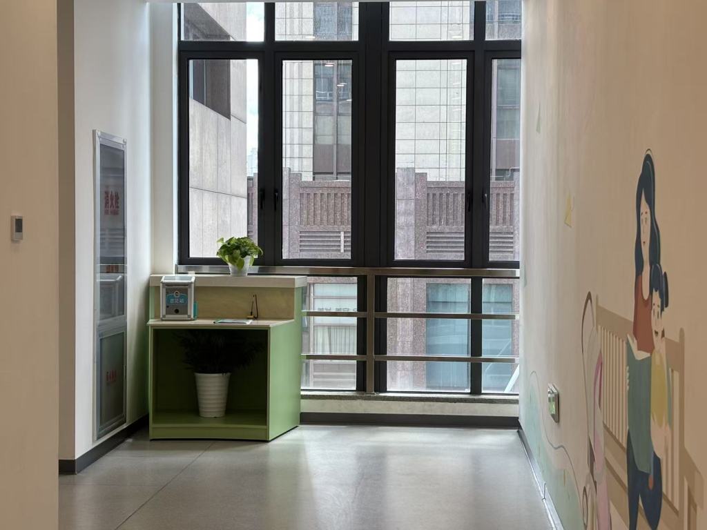 这座图书馆位于水电路的一栋小楼里,近6700平方米的面积,拥有40多万册馆藏书,其中一到三楼是图书馆,四楼是文化馆。记者看到,一楼能喝咖啡,二楼满排的书架绕着自习读书的男女老少,三楼有少儿图书室、多功能共享空间和用餐区。馆里静悄悄的,孩子们集中在三楼少儿图书室,大多由家长带着读绘本等。这个空间声响大些,特地做了个要进深一层的玄关,希望能有更好的隔音。