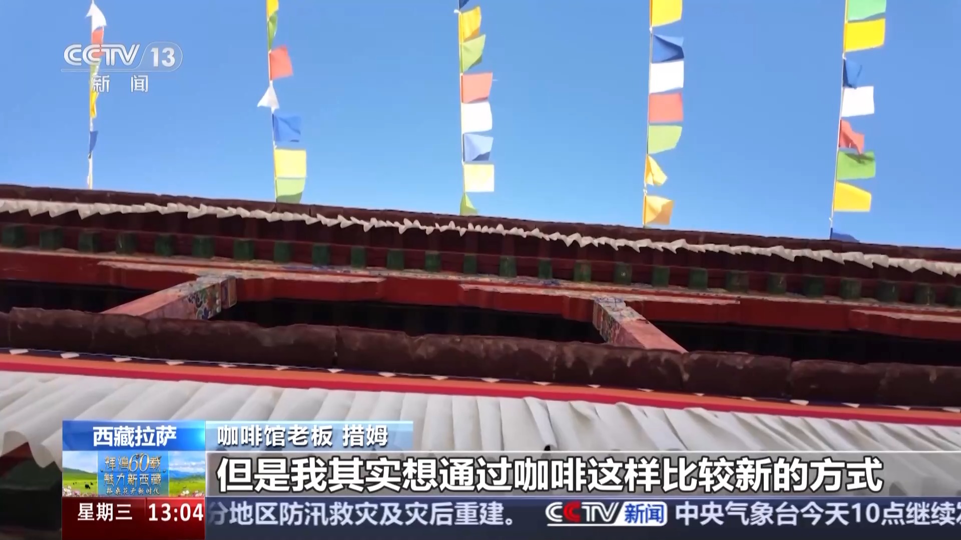 总台记者黄珊:这里是拉萨市区一家非常有特点的咖啡馆,在它的正对面就是当地标志性景点布达拉宫,游客们来到这里可以边喝咖啡边等着拍照,现场我们可以看到有老板自己购置并且改装的一个摇臂的摄影机,还有专业的摄影导演。