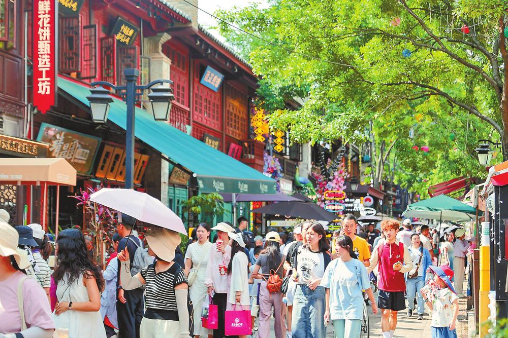 今年暑期,昆明老街人流如潮,旅游消费活跃。位于主城核心区的昆明老街,以独具魅力的历史人文景致、串联众多景点与商圈的区位优势,成为市区游的热门打卡点,吸引了八方来客。(云南日报 记者胡妤雅/摄)