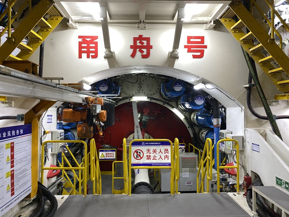 自2024年5月“甬舟号”盾构机始发以来,目前已掘进近2400米,深度位于海平面下约65米处。今年5月29日,工程迎来一个重要节点——盾构机由陆域段全面进入海域段施工。