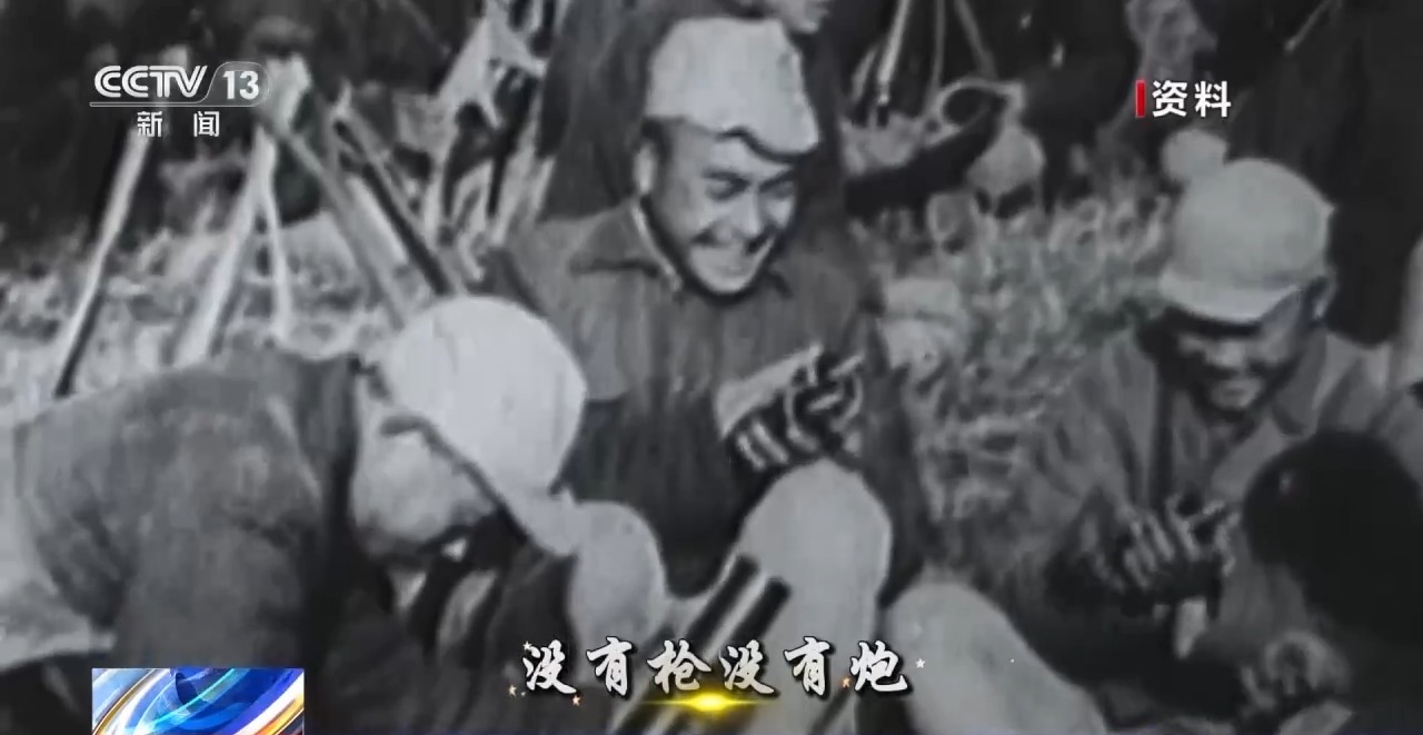 没有吃,没有穿,自有那敌人送上前,没有枪,没有炮,敌人给我们造。