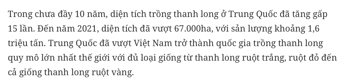 报道以火龙果为例指出,火龙果并非原产于中国。上世纪九十年代,中国果农看到了这种水果的巨大潜力,开始在广西等地进行试验性种植。依托科学化种植和地方政府的支持,特别是2013年以来,广西开始大规模种植火龙果。不到10年,中国火龙果种植面积增长了15倍,成为世界上最大的火龙果种植国。