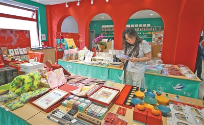 游客在北京地安门主题邮局选购文创产品。富 田摄(影像中国)