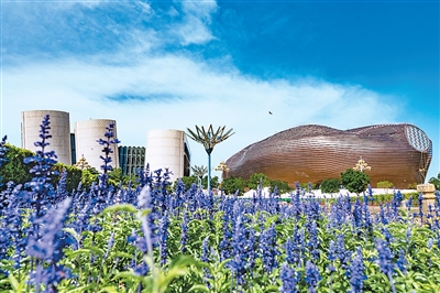 在康巴什,除了住宅楼,似乎很难找到两栋完全一样的建筑,尤其是公共性建筑和地标性建筑。据介绍,在核心景观和重要公共设施中,具有民族特色和当地文化特色的建筑占比达百分之七八十。当地倡导的一楼一特色、一街一景观,既有效防止“千城一面”,也催生了建筑的多样性及美学效应。记者发现,美学效应在叠加放大。在康巴什与伊金霍洛旗之间的衔接区域,两岸的建筑错落有致,各展其姿、相互映衬。