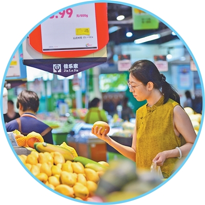 山东省青州市一家超市,消费者在挑选水果。王继林摄(影像中国)