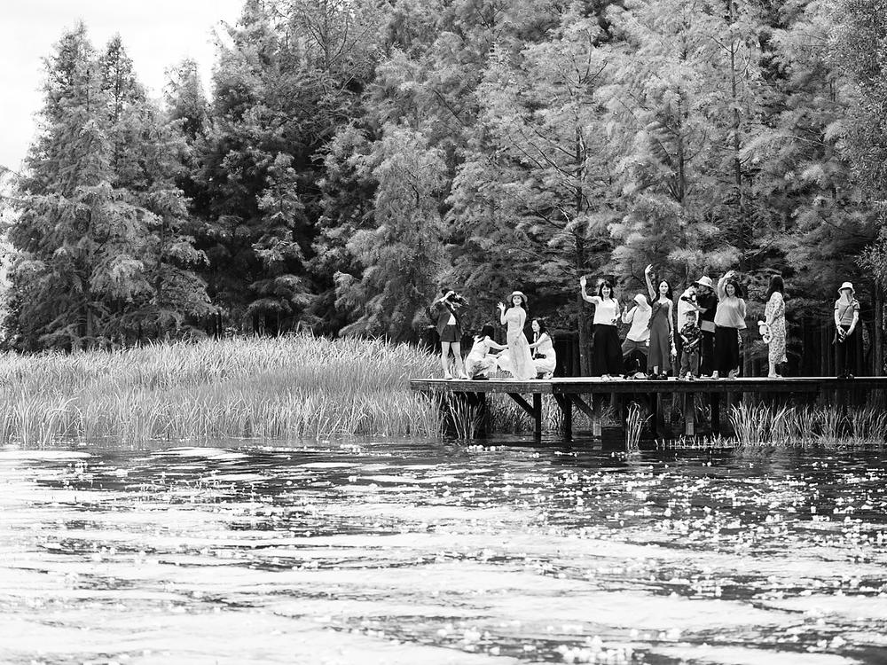 游客在洱海生态廊道亲水平台与海菜花合影 通讯员 杨继培摄