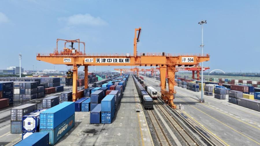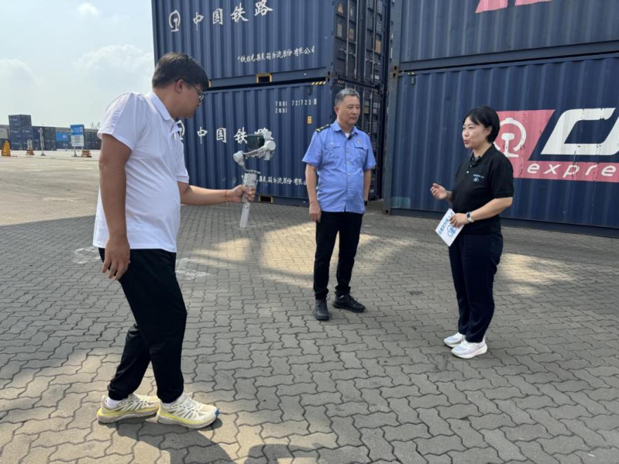 当天津港第二集装箱码头的集装箱完成转运,天津东疆港新港北集装箱中心站也进入了班列发车倒计时。在这里,“沿着班列看上合”融媒体报道组记者见证了一列中欧班列一路向北,正式启程。