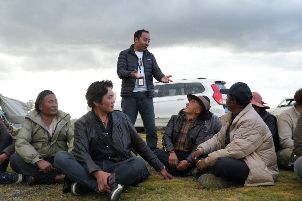 图为巴登求扎团队工作人员与牧民交谈。 何欣然摄