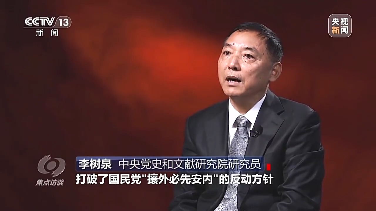 中央党史和文献研究院研究员 李树泉:首先在政治上打破了国民党“攘外必先安内”的反动方针,形成了“地无分南北,人无分老幼”全国抗战的局面,在军事上就形成了敌后战场和正面战场的战略配合,这样就陷日本侵略者于人民战争的汪洋大海。