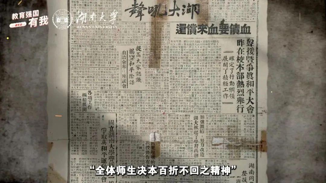 习近平总书记强调,广大青少年生逢其时,要赓续红色血脉,树立强国有我的远大志向,做堂堂正正、光荣自豪的中国人,勇担民族复兴的时代大任。2025年是中国人民抗日战争暨世界反法西斯战争胜利80周年,教育部政务新媒体推出“教育强国,有我!”网络主题宣传活动之“青年说·传承篇”系列,挖掘高校里的红色记忆,展现青年师生的时代担当。今天,跟教育小微通过1个微视频和1个故事,共同回顾湖南大学师生英勇抗战的烽火岁月——