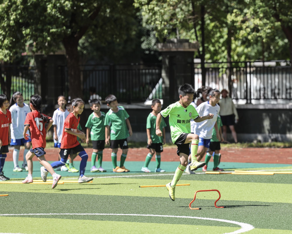 8月29日,浙江省诸暨市陶朱小学足球队员开展新学期首训。新华社记者 徐昱 摄