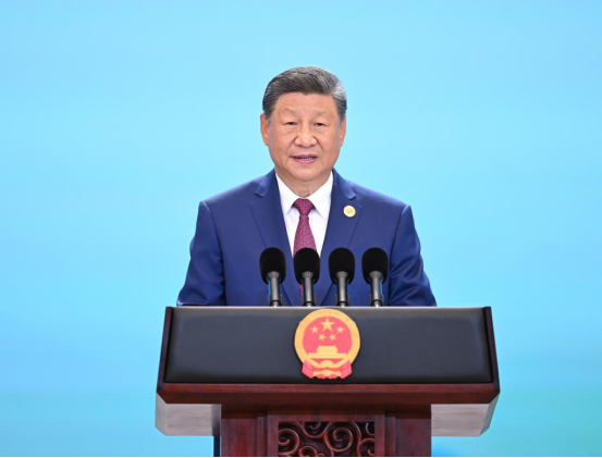 阐明天津峰会的时代使命——“这次峰会肩负着凝聚各方共识、激发合作动能、擘画发展蓝图的重要使命。明天,我将同成员国各位同事举行元首理事会会议,同更多友好国家和国际组织举行‘上海合作组织+’会议,共商合作发展大计,推动完善全球治理。”