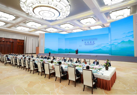 在悠扬的迎宾曲中,习近平主席夫妇同贵宾共同步入宴会厅。厅内,以青绿色调为主体的主背景尽显东方雅韵。主餐台用海河元素装点,配以层峦叠嶂、繁花似锦的微缩景观,寓意着上合组织的勃勃生机、各国合作的累累硕果。